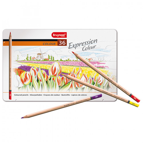 In het Bruynzeel Expression blik zitten 36 kleurpotloden van hoge kwaliteit met sterke dikke 3,3mm stift van hoogwaardige pigmenten voor een extra goede kleurafgifte.